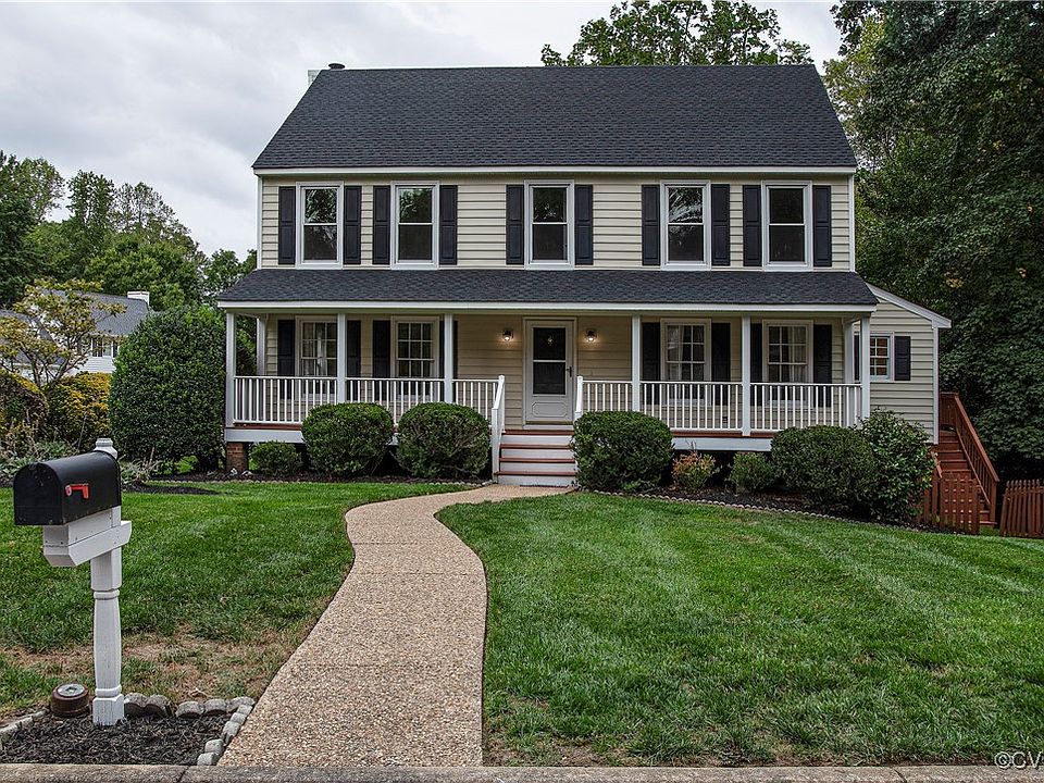 Well maintained Colonial with huge front porch and huge private back deck in a quiet CREEKWOOD neighborhood ans great schools. Convenient life style with everything close by. 3 minutes from Short Pump. Freshly painted, New Roof and Skylight, New Granite counter top and backsplash, New basement LVP flooring and windows, New range and microwave. Main Level has Kitchen, Dining room, Family room, Living room, Washer/Dryer room, and half bath. Level 2 has 4 bedrooms along with 2 full baths. Basement has a great room along with full bath and a storage room.