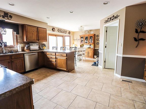 Impressive 4 bedroom ranch on 1/2 acre in Sun Ridge Estates. Gleaming hardwood floors, custom kitchen, and baths. Looking for an in-law suite, this home has a 4th bedroom with an egress window and a bathroom with a large walk-in shower in the lower level. There is a sidewalk that walks around to the lower level. Dramatic coffer ceilings in the great room and master bedroom. Well equipped kitchen has lazy susans, pull-out shelves, breakfast bar, and planning center desk. Generous size laundry room has cabinets, a built-in ironing board, and a handy folding counter. The man cave workshop with a double door walk-out is what sold the current owner, the perfect place for his Harley Motorcycle. This custom home has an open staircase to the finished basement with rod iron spindles, crown molding, and leaded glass sidelights at the front door. The heart of this home is the full masonry fireplace with a wood stove insert. Huge deck with great views and level fenced yard. Home Protection Plan.