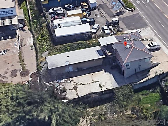 Single Family Home in a C-36 Commercial Zone. Highly visible Sweetwater Rd location with many possible commercial uses. 2 bedroom (3 bedroom option), 1 Bath house, 1,528 SF house, Commercial C-36 zone, 60' frontage on Sweetwater Rd, 2 car garage, large open storage yard, partially enclosed warehouse,, 4 + parking spots, 15' driveway for easy access. Plenty of parking, both covered and uncovered.