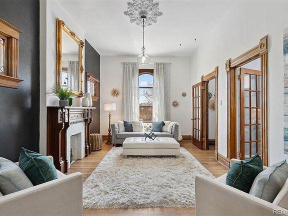 Vivacious Victorian in highly sought-after Jefferson Park. This 1888 home is nestled on a large, raised lot zoned G-MU-3. Property has been thoughtfully modernized while preserving the vintage details and character. The stunning and spacious designer kitchen features white subway tile backsplash, stainless appliances, gas range and lovely apron front sink. The primary bedroom connects to the bathroom which has an overly large shower with oversized dual heads, gleaming black subway tile, shower bench & Gold fixtures that will help you relax and rejuvenate like a day at the spa. Living space has 12' ceilings, a decorative fireplace with classic wooden mantel surround and original wood floors. Magnificent stained glass, transom windows, and beautiful woodwork in the dining and living area show off the homes original character and charm. You will love to strike a pose in this beauty at your next extravagant dinner party or gathering. You can also enjoy mountain and city views from your front porch or entertaining from the extra-large backyard and new patio that is perfect for entertaining. There is a large backyard that can be used for many possibilities. Garage with possible artist studio on 2nd level or potential to possibly finish and upgrade. Jefferson Park and shops just blocks away. Why buy a condo, when you can own a piece of land with G-MU-3 Zoning near downtown. Great for possible long-term investment, Buy and rent, Buy and hold, Buy and build, Build or live. So many options. Potential to slowly buy up the block and build in the future. Many options for a homeowner or investor to possibly build a townhome, townhouse or add and ADU. Do not miss this opportunity to own and live on this amazing property. Newer roof and a/c.