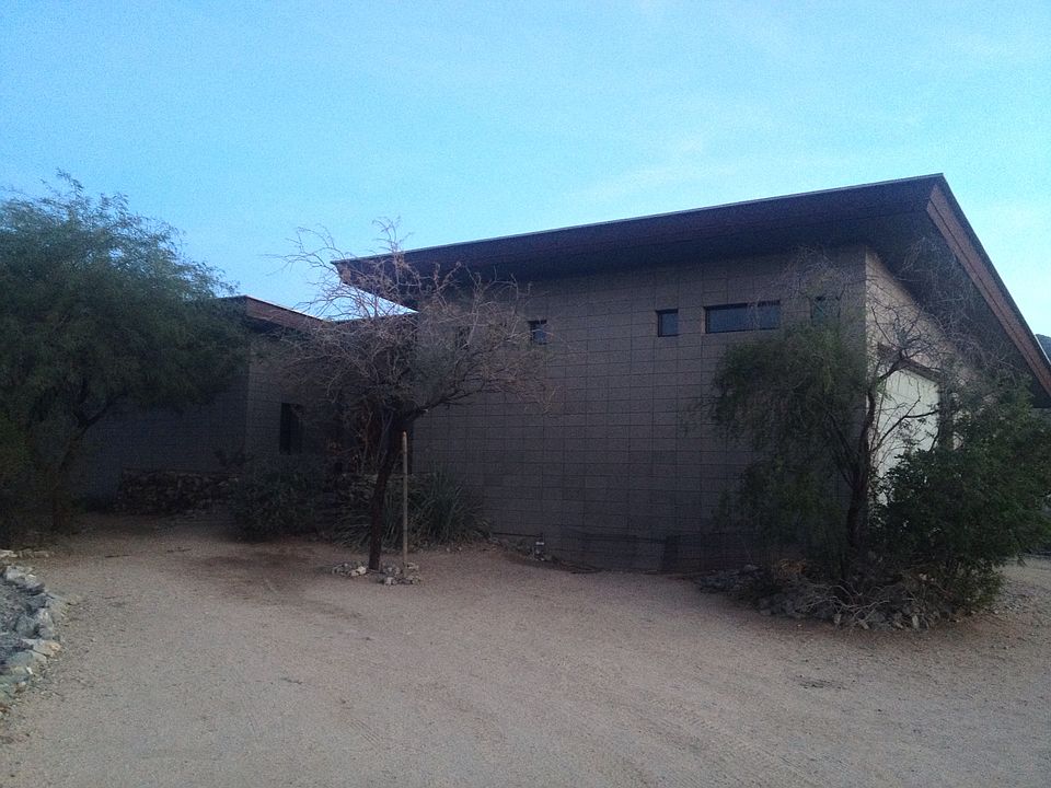 Modern solid home in private, quiet secluded desert setting with amazing views. Convenient location minutes to hiking, biking and multi use trails, new freeway, downtown, West Valley and Airport. Stunning masonry exterior walls by the award winning Pioneer Masonry company. Note the flawless stack bond pattern (all window and door openings were designed as part of the block work, not a single block was cut!). The window sills are solid block ,custom cut and polished to create the sills. Sight down the walls, they're impeccable.Sandblasted block for a rich texture. It's beautiful and built to last forever! Masonry stem walls continue the block right into the ground.Energy efficient Radiant Barrier wraps interior block walls.Striking ''butterfly'' ceiling in Great RoomThe home was sited toward the stunning view of South Mountain while remaining mindful of our Arizona sun.In summer the great room is shaded from the scorching sun by the deep overhangs. In winter, the room is bathed in morning light while the concrete floor is warmed by the sun. Clerestory windows add light to the garage.Bold 4" overhangs provide shade in the summer.16' wide sliding patio doors in the great room create an 8�� wide opening to theoutdoors.Classic figured quarter-sawn oak highlight the custom cabinetry throughout.The house feels larger than its 2100 sq ftWide hallways and doorways in the home promote comfortable aging in place.Master bath has a generous, long, double vanity w/ lots of drawered storage, and a walk-in shower. (There's even built-in cabinetry in the W.C with a carefully placed window to peek out to the desert!The master closet and dressing hallway are beautiful and functionalTall, shallow cabinetry along the main hallway creates the perfect spot to store cleaning supplies, bath products, etc.Note the handy "grab-and-go" cabinet next to the garage door, perfect for purses, packs, etc., and even a spot for your phones to charge.A built-in buffet/ drawer unit floats above the floor in dining area (more storage!).The guest bedroom has it's own personality w/ tall natural ash closets and built-in bookcases creating a cozy space around the window.The deep tones of the Concrete Floors have a richness of their own. And once again, although gorgeous, it's a low maintenance surface.2 gas FireplacesSpacious Laundry room is conveniently located next to the master bath w/ another door that connects it to the great room. Lots of custom cabinets here too.Office/den has wonderful western views of the setting sun and its own entrance to the house.Interior walls are constructed w/ metal studs for greater stability and they're termite proof !Energy efficient, dual-pane, Milgard windows in antique bronze finish throughout also add wonderful natural light into the garage space. Track lighting floods the space w/ light. (High ceilings allow amazing storage.Generous 18' x 10" tall garage w/ automatic opener allows for taller vehicles. Garage is plumbed and ready for utility sink. Solid core doors throughout home!Deep, soaking tub in guest bath.Slate bath/shower surround in Guest bathCustom tile work in Master bath shower w/ seat.Much of the surrounding vegetation is native and original to the property. Note the ancient ironwood tree at the north end of the property.Multiple water hose locations surround the house.City of Phoenix water service! (meter is on Sunrise Dr.)(Existing Well on property could be used for irrigation if pump were installed.SRP electric, 400 amp service. (Enough power for the addition of a workshop, studio, or casita)(LP gas for water heater, dryer, and fireplaces, cooktop, and oven means you can still have hot water if the power goes out! And w/ 250 gallon buried propane tank, it's out of sight, and you're set for the year.Copper underground plumbing.