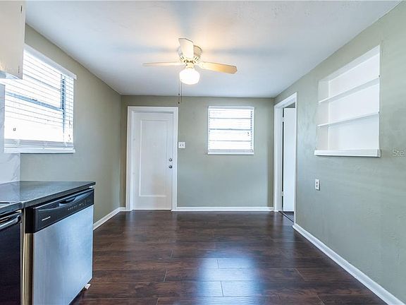 WONDERFUL 3 bedroom, 2 bathroom 1-car carport home nestled within Tampa. The ADORABLE front porch of the home is the PERFECT spot for a cute bench while enjoying a cold glass of lemonade in this INCREDIBLE Florida weather! This LOVELY home boasts 951 heated square feet, and it features GLEAMING laminate flooring throughout most of the home, as well as tile flooring within the bathrooms. The family room offers lots of windows that allow for LOTS OF LIGHT to illuminate the home. Due to the OPEN FLOOR PLAN between the kitchen and family room, entertaining friends and family from the kitchen is a breeze. The DELIGHTFUL EAT-IN kitchen offers white cabinetry, mostly STAINLESS STEEL appliances, and a breakfast bar! All three bedrooms boast ample space, and are easily convertible. Both bathrooms boast a crisp white theme throughout. The WONDERFUL backyard encompasses a large wooden shed where the laundry room, and a workshop area are situated, with plenty of shelving for EXTRA STORAGE. In addition, the backyard boasts a metal shed, GREAT for gardening tools, and holiday decorations! Conveniently located FIFTEEN MINUTES from the Tampa International Airport, SEVEN MINUTES from the Raymond James Stadium, and FIVE MINUTES from I-275 for easy commuting. Within WALKING DISTANCE from MacFarlane Park, which is GREAT for spending time having fun-in-the-sun with the family! Don't miss this INCREDIBLE opportunity!!