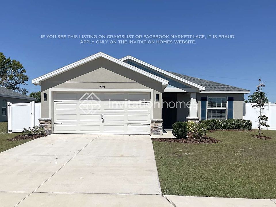 Home Features and Amenities: Air Conditioning, Fenced Yard, Garage, Granite Countertops, Kitchen Island, Long Lease Terms, Luxury Vinyl Plank, Open Floorplan, Pet Friendly, Primary Bedroom on Main, Recessed Lighting, Single Story House, Smart Home, Stainless Steel Appliances, Walk in Closet, W/D Hookups, and professionally managed by Invitation Homes.