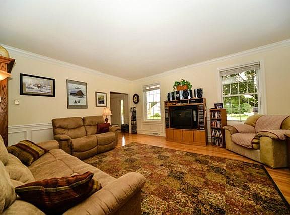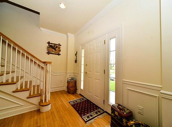 Quality built home by Costello Builders Beautiful kitchen w-granite countertops, custom cabinetry, ceramic tile backsplash, tile floors, spice rack, pantry w-pull out drawers & breakfast bar. Sunny dining area/sunroom-hearthroom. Light & airy interior. 1st floor family room w-gas fireplace, oak floors, crown molding & wainscoting.