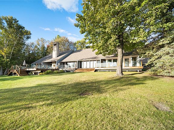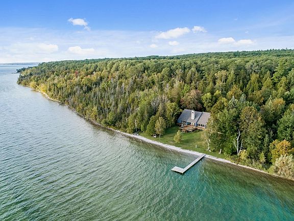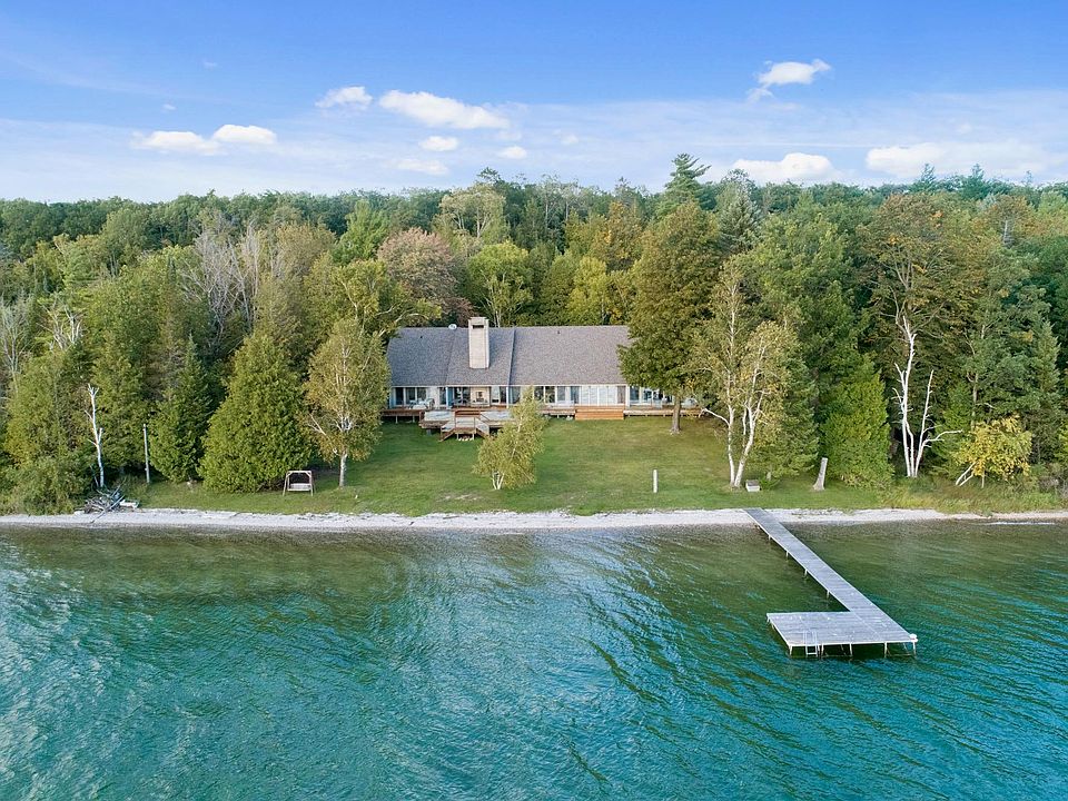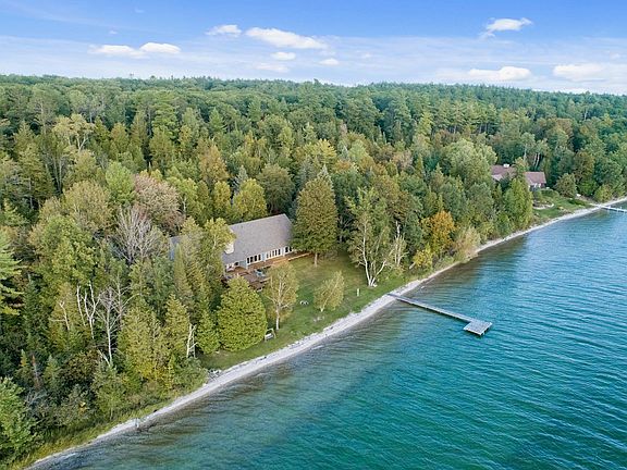 This is your opportunity to live in one of the most interesting homes on Burt Lake. This home is bordered on three sides by Little Traverse Conservancy's Seven Springs Nature Preserve, and over 200' of Burt Lake frontage. The open concept home with 4 bedrooms, each with private baths, two distinct living areas in addition to the large kitchen and waterside dining area. The beautiful lakeside deck with glass panel windbreaks and an outdoor fireplace make this a grand venue for entertaining or relaxing watching the sunset across the lake. This property also includes a 4 bedroom, 3 full bath, 1,496 sq ft guest house with a kitchenette. Sold with many furnishings allowing you to move in and start enjoying lakeside living. All land dimensions are subject to change and Township split approval.