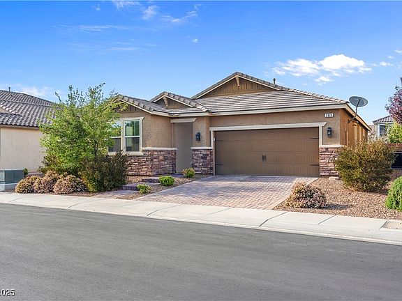 Welcome to your retreat in the heart of Inspirada! This beautifully single-story home features accent stone siding, a pergola, hot tub, spacious patio, and outdoor fire pit—perfect for relaxing or entertaining. Inside, enjoy an open-concept kitchen with stainless steel appliances, a breakfast bar, and a spacious primary suite with a walk-in closet and custom cabinetry. Tankless water heater.