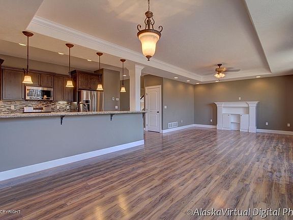 Like new town home just minutes from downtown Wasilla on the Canal of Wasilla Lake. This town home has immediate access out the back lawn to Wasilla Lake thru the canal, Planes, Boats, Jet skis, and snow machines. Home features all bedrooms, office, and laundry upstairs. Master suite has canal and lake views, master shower features massive walk in shower, granite counter tops, and tile floors. Con