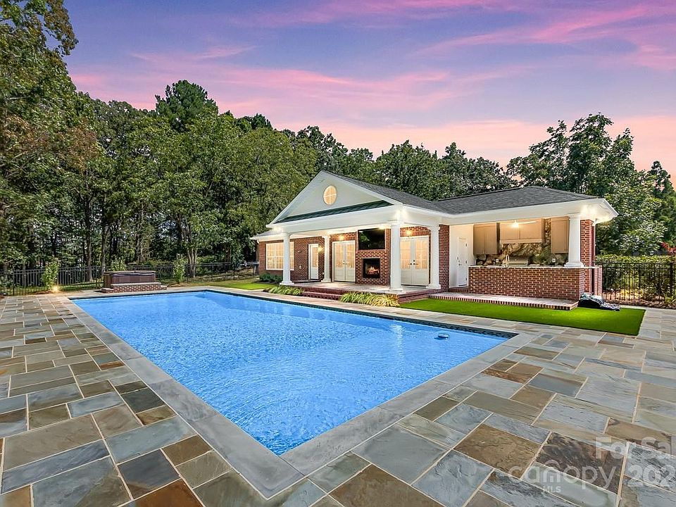 You will fall in love with this spectacular one story with Bonus/Bedroom 4 that makes a perfect Guest Suite or Private Office upstairs. The icing on the cake is the Custom, Full Brick Pool House with an additional 530 sf of Heated Living Area and Full Bath with High End Finishes, Huge Outdoor Grilling Veranda area with a Full Kitchen equipped with Ice Maker, Dishwasher and Refrigerators. Covered Patio with Double Fireplace and a 225sf Garage/Man Cave/Gameroom all overlooking a 20ft x 40ft Gunite Saltwater Pool and Hot Tub. Built in 2023, with every bell and whistle you can think of including an Outdoor Shower. Perfect Fort Mill, SC location in sought after Eppington South neighborhood with Custom Built Homes on large private lots. This home has one of the largest lots in the neighborhood with 1.5 acres surrounded by mature trees, beautiful landscaping and full irrigation system. Very large covered back porch and large deck with seating overlooking a Koi Pond with waterfall. Inside you will find gorgeous solid hardwood floors throughout the Main floor that are newly refinished. Newer Windows, Gutters, and Garage Doors. All new plumbing fixtures, new toilets, new lighting, new carpet upstairs, new vanities in 2 of the full baths, new interior paint, new paint on back deck and much more. There is plenty of parking with a large circular drive and long primary driveway leading to an oversized 2 car garage. The Family Room and Primary Bedroom have soaring, vaulted ceilings and an abundance of windows that provides great natural lighting. You will not want to miss seeing all of the great entertainment spaces in this move in ready home. Nationally Ranked Fort Mill Schools and minutes to I-77, exit 88 Gold Hill Road.
