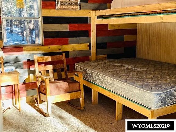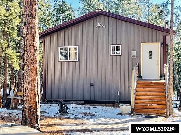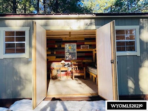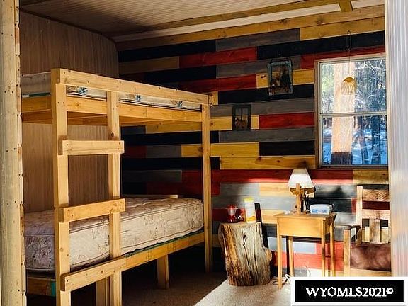 One-of-a-kind Mountain property located near the community of Esterbrook. This cabin is gorgeous, surrounded by pine trees and ready for a new owner! In addition to the cabin is a bunkhouse with a firepit area and it's own outhouse! This place has custom finishes and neat features throughout the main cabin. Locally sourced barnwood on a feature wall to the basement, built-in bookshelves, and knotty pine ceilings and cabinets provide the rustic charm! Several outbuildings are on the property for storage.