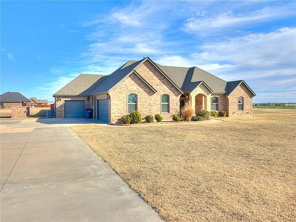 Modern Country Farmhouse Style home located within minutes Yukon, Mustang, and El Reno. This home sits on a spacious on 2.50 Acres in an ATV friendly neighborhood!! The interior offers an Open Concept living/dining area, 4 Bedrooms or 3 Bedrooms Plus Study, 2 Baths, and 3 car garage! The Spacious Master Suite features a Jetted Jacuzzi Tub, Separate Shower, Double Vanities & an Awesome Master Closet that conveniently links to the laundry room! The kitchen features all stainless steel appliances, gorgeous dark stained cabinets, and beautiful, hand scraped hardwood floors! Includeds a 10 person storm shelter! Banner grade school with a 1 time open transfer!