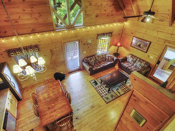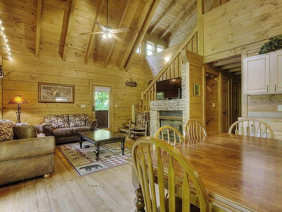 SPACIOUS 4 BEDROOM+ GAME ROOM cabin in beautiful Smoky Cove! Plenty of room to gather in a game room, or open living room. Kitchen is equipped with stainless steel appliances, ample counter space. 2 bedrooms on main level. Upstairs loft is used as a spacious king size master suite with jetted tub,private bathroom and walk in closet. Downstairs features a game room, bathroom, bedroom and large utility room. Enjoy the outdoors under covered decks or relax in a bubbling hot tub on the screened deck. Wood floors, tongue-and-groove, and cathedral ceilings throughout; downstairs has new gleaming laminate flooring. 10 minutes from the Main Parkway in Pigeon Forge or 5 min to Wears Valley rd. Resort features paved roads, outdoor pool. Several back roads to choose from.