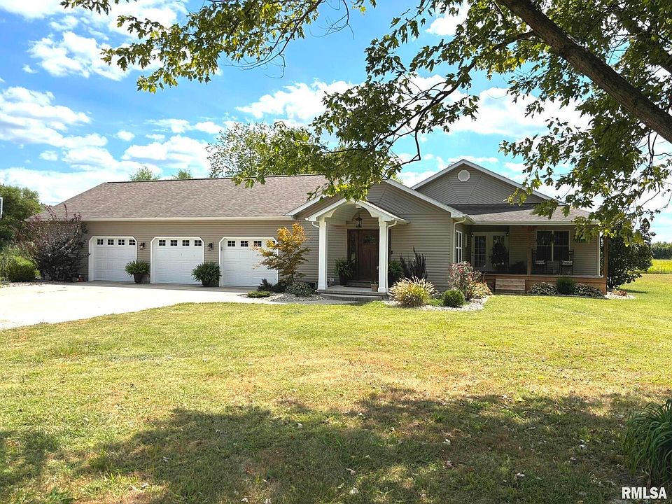 Amenities Abound in this one of a kind custom built home. Open floor plan with two living spaces, three full bathrooms, shiplap walls, cathedral ceiling, hickory kitchen cabinetry, breakfast bar, nook to design a coffee bar, wet bar, or pantry as well as a Kitchen extension area offering multiple uses, 7' x 7' walk-in master closet, ceiling fans, REAL hardwood floors, new carpeting, wired for security system, tons of storage, fabulous oversized laundry room with sink, cabinetry and folding table, two newer hvac systems and duct work, newer roof. Lets go outside - Front porch and deck, back multi-level deck with tv/bar area, dining area, and hot tub area, fire pit, 1260 sq ft three car garage with additional storage, newer landscaping, concrete apron, 2.5 acres to roam.