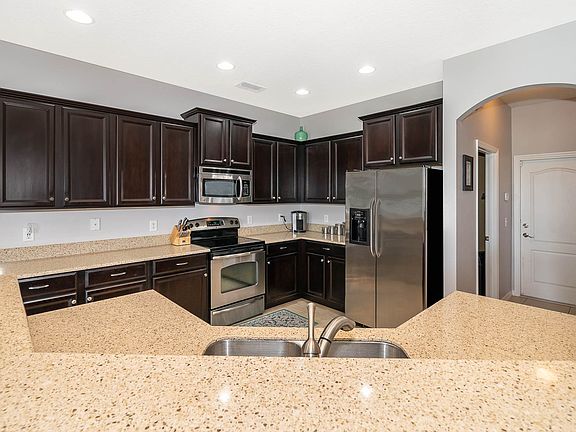 - Interior Features: Ceiling Fans(s), Eating Space In Kitchen, Split Bedroom, Stone Counters, Walk-In Closet(s), Solid Wood Cabinets, Kitchen/Family Room Combo, Window Treatments