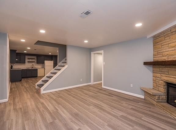 NEWLY REMODELED! *No Application Fee* Modernized 2-bedroom, 1-bathroom entire basement apartment in a quiet MHK neighborhood with all new clean, interior finishes. Open and spacious kitchen, dining and living areas with limestone fireplace, vinyl wood plank flooring, recessed lighting, new marbled laminate countertops, tile backsplash, walk-in pantry/storage, garbage disposal, dishwasher and more! Brightly daylit bedrooms, as well as a newly tiled glass shower and large vanity in bathroom. Pets are allowed with additional pet rent fee. Private entrance into apartment with on-site amenities including large fenced-in backyard access, included in-unit washer & dryer access, off-street parking. Tenant pays water, electric, gas, and wifi. Owner pays sewer, trash, snow removal, and lawn care services. Available in August 2024, move-in date flexible. 12-Month Lease. Pet Rent = $30/mo. No smoking allowed. Water, Electricity, Gas, WiFi, paid by Tenant.