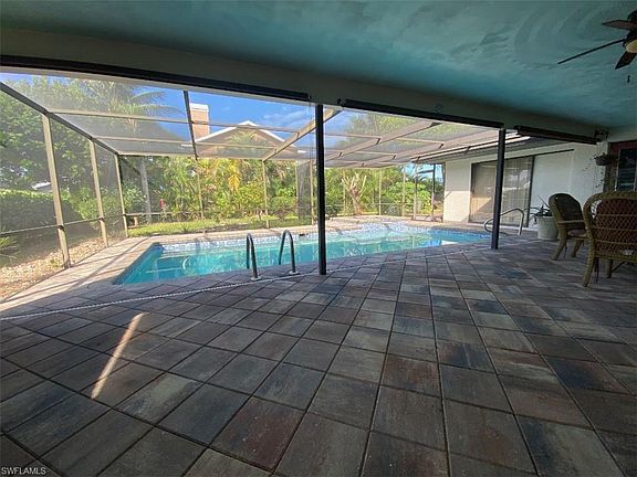 Beautiful 3/2/2 pool & spa home directly across from gulf access homes. This very spacious home features an updated kitchen with granite counters, cabinets, stainless appliances, tile and laminate flooring throughout. Both interior and exterior has just been professionally painted. Hurricane Impact Windows throughout most of the house. Brand new metal roof installed(October 2019). The huge brick paver pool/spa and patio area has a western exposure and is perfect for entertainment or for large family gatherings. This home is located in a quite neighborhood only minutes from plenty of shopping, dining, schools and a 10 minute drive to Fort Myers. This is a perfect home for a First time home buyer, Seasonal homeowner, or a Family looking for a more spacious pool home. Schedule your Showing Today!