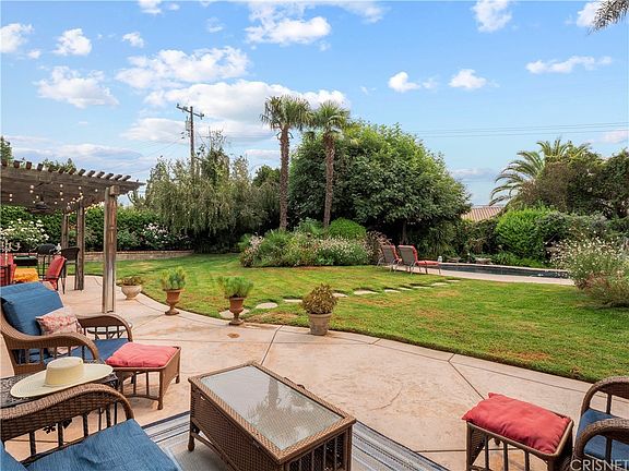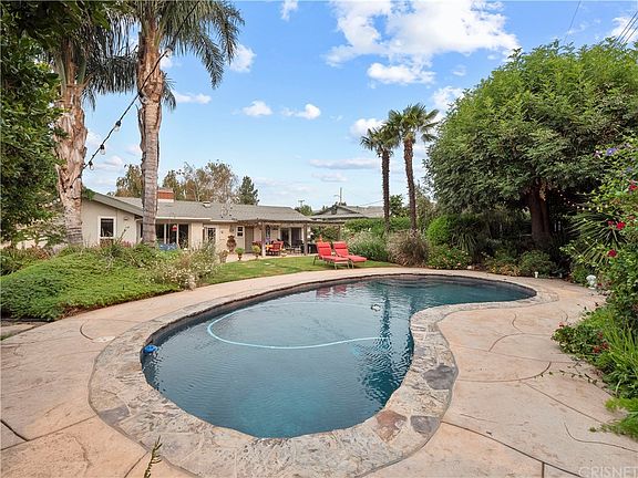 STUNNING Texas Tract single story 4 bedroom POOL home nestled on a FLAT 1/3 of an acre Lot! COMPLETELY RE-BUILT in 2015 from the studs out, this home features top-notch materials & finishes throughout! Located just a quick walk to Simi Hills Golf course, this sprawling ranch-style property has a master bedroom with direct sliding glass door to the very private & expansive entertainers dream of a backyard! The fully renovated Chef's kitchen is gorgeous with Quartz counters and full back splash, custom cabinetry, Stainless Steel appliances & unique fireplace perfect for holiday entertaining! Adjacent to the kitchen is the spacious family room with vaulted ceilings and the home's secondary wood-burning fireplace. All rooms offer views to the beautifully landscaped yard. There are two additional bedrooms that overlook the front garden. A generously sized 4th bedroom is located on the opposite end of the home that could also be ideal as a home gym or office. The front living room features the homes third fireplace and leads to the dining room which opens to views of the back garden & large sparkling pool! The backyard has open grassy areas & cozy discreet nooks to enjoy your morning coffee surrounded by rose gardens, Queen Anne palms & beautiful variety of flowers & mature foliage! There are many fig, orange & lemon trees as well as producing grape vines and an organic vegetable garden! This property is absolutely remarkable and very much one of a kind!!!