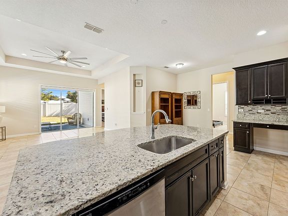 Spacious islandGranite countertopsLuxurious bathCeiling fansPlantation shuttersLow-maintenance tile flooringTray ceiling