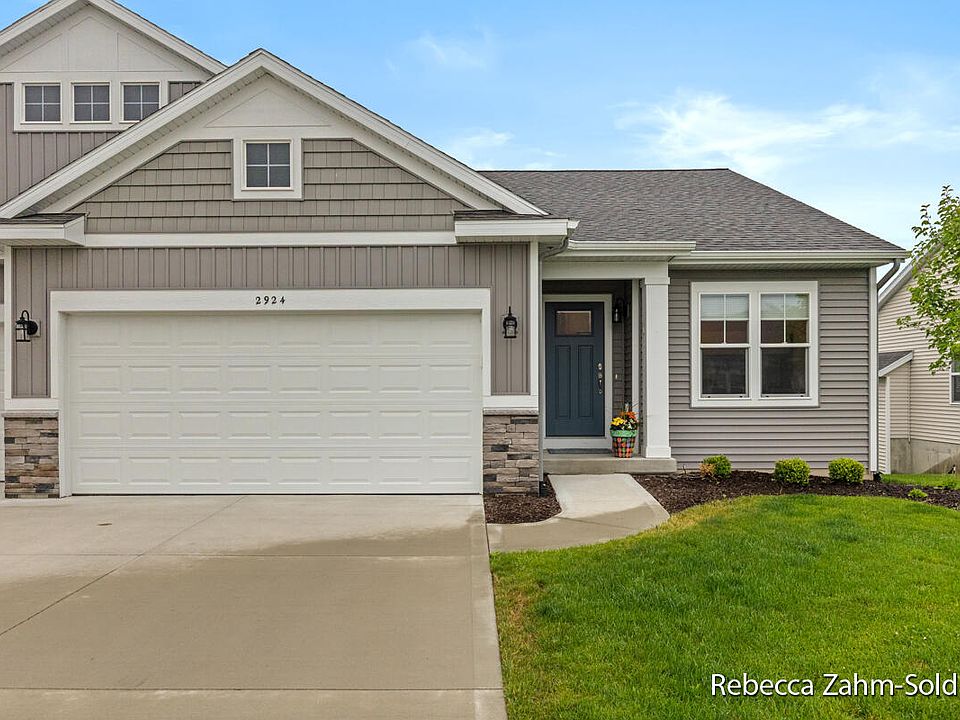 Welcome to Meadow Creeks Condos. This beautiful open floor plan boasts 2 large bedrooms, 3 baths and an additional flex room that you can use as a home office or for additional living space. The kitchen offers a center island with seating, soft close cabinets and a large pantry. Venture to the dining and living room area where it opens to the gorgeous Michigan room with slider to your deck and staircase to patio. The main floor also features a primary bedroom with en suite and attached laundry with large walk in closet. As you make your way to the lower level walk out you are invited in to the cozy living space with the 2nd bedroom and full bath as well as plenty of storage space. The 2 stall garage is nicely finished with drywall. Centrally located in Rockford near everything you need!
