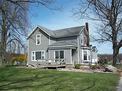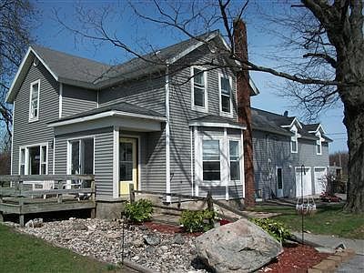 Great location for this updated farm house -huge rooms- 5 bedrooms, 3 baths, and over 2700 SqFt. Hardwood floors, high ceilings, deck, shade trees & circular blacktop drive. Large pole barn for all your toys. Private guest quarters new in 2001 include a kitchen, livingroom, bedroom and bath. Income potential. Info# 9168