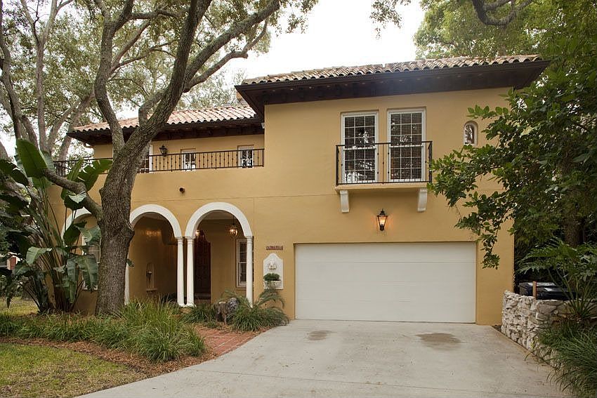 Beautiful Mediterranean home on one of South Tampa's prettiest tree lined streets. Open & spacious with travertine floors, volume ceilings & double sided fireplace from the living room & family room. There is a downstairs full bath plus an office. The French doors in the family room overlook the saltillo tiled patio with views of Hawthorne Pond. The kitchen has an eat in area with built in benches overlooking the back yard & pond. There is a center island, gas stove top & white cabinets with glass fronts. The family room has avolume ceiling & Romeo & Juliet balconies from the second floor. Spacious master with 2 walk ins and a large bathroom with a soaking tub & walk in shower with glass blocks. The guest suite upstairs also was a sitting room/office. Very tranquil & peaceful setting!All measurements are approximate and Buyer(s) to verify all pertinent information.