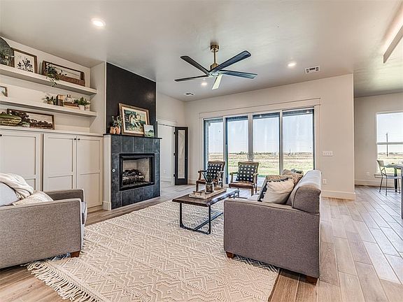 Seller is offering $5,000 towards buyers closing costs --- AND --- Great Plains Bank is offering $2,000 towards buyers closing costs!!! WOW!!! Now let's talk about this gorgeous home.... At first sight you will fall in love. Beautiful landscaping greets guests before they enter through the massive 5-lite glass front door. Once inside your eye is immediately drawn back outside through the extra wide view of country living. The 12' wide wall of glass provides easy access to backyard fun through the center slider doors. This great view is visible through all of the main area of this open concept home. The living room has large custom built cabinetry w/ floating display shelves & a beautiful gas FP. The kitchen boasts an oversized island, floor to ceiling cabinets w/ both under cabinet lighting & upper cabinet display lighting. Dramatically highlighting everything are the ceiling uplights & gorgeous hanging pendants. Tucked around the corner is the butlers work area complete w/ wine storage & plenty of counter space to also be your morning coffee bar. The master suite is impressive w/ its modern barn door that leads into the en-suite where you find 2 wide vanities w/ considerable countertop space & the jaw-dropping modern soaker tub w/ glassy black exterior & contrasting white interior. Off the living room is the flex space that's perfect for a home office, playroom, video game room, workout space, etc... GO UPSTAIRS to the large unfinished attic that is perfect for holiday storage now & additional living space later!!! Multiple upgrades incl: spray foam insulation, fans in all bedrooms, upgraded appliance pkg w/ built-in burner gas cooktop, dual fuel heating, quartz & granite counters, fiber internet & paved roads in Cashion SD! ****Do you want more space than just this .5 acre? Well great news, the adjoining .5 acre lot to the east is ALSO AVAILABLE FOR PURCHASE for $55,000.