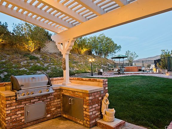 Enjoy the Beauty and Privacy of this Unique Entertainer's 4 BR/3 BA Hillside View Home, Includes Downstairs Guest Bedroom/Bathroom. Situated in Highly Desirable Stonecrest Community-NO HOA or MELLO ROOS! You Will Enjoy the Resort Style Backyard with its' Beautiful Landscape and Stylish Lighting, Covered Patio, Spa, Firepit, Built-In BBQ, and Two Separate Dog Runs. You'll Appreciate Having a 3 Car Direct Access Garage. Chef's Kitchen Features Granite Counters and Large Center Island with Breakfast Bar, Double Oven, Viking Wine Refrigerator & Walk-In Pantry. The Spacious Family Room is Adjacent to the Kitchen. Family Room has a Cozy Fireplace, Built-In Cabinet for your TV and a Custom Wine Rack. Enter the Spacious Living Room and Adjoining Dining Room with High Ceilings and Surrounding Windows-Adding Natural Light. The Open Master Suite Offers Amazing Views of the Scenic Mountains. Expansive Master Bathroom Features Separate Tub & Shower, Double Sinks, & Dual Walk-In Closets. Impressive Laundry Room with Sink/Cabinetry and is Conveniently Located Upstairs. Additional Bonus Features: Newer Carpet, Surround Sound Speakers, Whole House Fan, Reflective Attic Insulation, Two A/C Units offering Dual Zone Temp. Control. Storage under Stairway, and Ceiling Fans throughout. This MUST SEE HOME is conveniently Close to 14 Fwy, Schools of Excellence, Parks, Bike Trail, and Shopping.