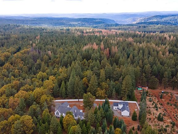 Traditional Custom Ranch Estate on 22.9 acres with Views! Main House is approx. 3691 SF with open foyer to Formal Living room with double sided fireplace and cathedral ceilings, grand sliding doors to deck, and quality hardwood floors throughout. Gourmet kitchen with white cabinets, hardwood floors, huge pantry, prep island with sink and pull out drawers. Picture window to overlook private acreage. Family room with built in bookcase and entertainment center. 4 bedrooms, 4th bedroom used as an office with double sided fireplace. Master Suite with private deck, double sided fireplace to master bath. Claw foot soaking tub, over size tiled shower stall & vanity area. An abundance of windows, 4 Fireplaces, 3 skylights, inside utility room with half bath. Second building is approx.3444 SF total includes 2471 detached gargage,808 R-3 Living on upper level, 165 SF covered Observation Area with spiral staircase. Pad area for future building. Fenced Garden area. First time on the market!