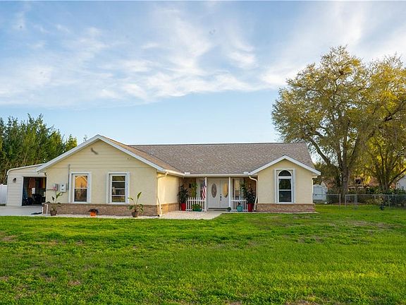 Gorgeous, must see POOL home in Citrus Trace III. No CDD, no HOA, no Deed Restrictions! This spacious home has been upgraded to the fullest, and has been carefully maintained. Features a desirable SPLIT FLOOR PLAN offering maximum privacy for you and your family/guests. The foyer leads to the main living area, featuring a gorgeous granite fireplace (wood burning) with matching countertops in the EAT-IN kitchen. Sliding glass doors lead out to a picturesque Florida backyard with screened in pool patio. Enjoy outdoor living at its finest through sliders from the kitchen or master suite! This home also features upgraded TRAVERTINE floors throughout, as well as in the bathrooms and laminate in the all the bedroom quarters. You will find plenty of space to work from home, or tinker on hobbies in the converted attached garage - which is now an in-home workshop. Detached is an oversized 25x35 garage with storage, enough to park 4 cars or recreational vehicles! EXTRA HOME FEATURES: Hurricane shudders, Reverse Osmosis system, NEW A/C, NEW pool heater, New Solar panels installed 2020, Stainless steel appliances, Double pane windows, Water softener, Extra blown insulation, and Radiant barrier. This home is FULLY LOADED and economically efficient. This home is truly loved by its current family, not to be missed. Situated just off of SR 54 and only minutes from I75 for easy highway access, the Wiregrass Mall, Tampa Premium Outlets, dining, and more! Right down the street from SCHOOLS! Must see today!! Buyer must assume responsibility of the Solar System payments, which has saved the seller money compared to the original electric bill. $149.88/ Month