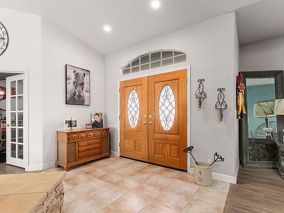 Discover a beautifully maintained single-story gem that is a rare find in the market. This exceptional home features the highly sought-after Michael Crews Jasmine IV Floorplan, offering 4 bedrooms and 2.5 baths across 2,748 square feet of living space on a generous 2-acre parcel. Property Highlights: Spacious Layout: 4 bedrooms and 2.5 baths provide ample living space. Dual Garages: Includes a 4-car attached garage and a permitted, insulated 2-car detached garage, ready for potential ADU conversion. Living Spaces: Dual living spaces include a formal living/dining room and a cozy great room with a two-way wood-burning fireplace. Gourmet Kitchen: Chef's delight with dual ovens, granite countertops, new granite sink, walk-in pantry, and ample prep space. Modern Amenities: Newer HVAC, luxury vinyl plank flooring, fresh paint, ceiling fans, propane readiness for a built-in BBQ, and invisible fencing. Gated Entry & Views: Gated entry and view patio offering stunning vistas of the Valley Center hills. Versatile Land Use: No HOA or Mello Roos, allowing freedom for RVs, raised garden boxes, 4H animals, chicken coops, horses, and more. Equestrian Facilities: Includes a riding arena and a 6-stall mare motel equipped with automatic lighting, water stations, and a fly spray system. Horse Facilities: Seller will remove horse facilities if buyer prefers. Embrace the Valley Center lifestyle and explore the endless potential this property has to offer. Whether you're looking for a spacious family home, equestrian facilities, or the perfect space to convert for your unique needs, this property has it all. Come out today to see all the potential this property has
