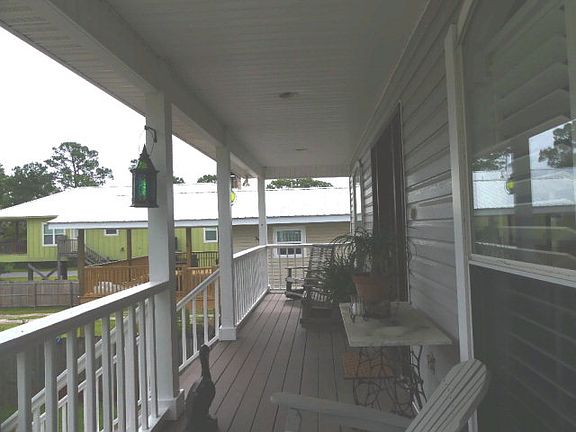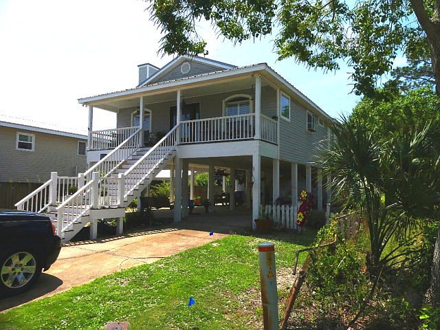 Cute, raised beach cottage in desired area of Bear Point Estates. Home has large front and back porches which extend the length of the home. The home has an open floor plan, kitchen with breakfast bar and dining area. A bright sun room with lots of windows opens onto the back porch which has an exterior elevator (1K lb capacity). The master bedroom also opens to the back porch. There are two guest rooms upstairs and a guest room on the ground level. There is lots of outside living area in the backyard and underneath the home. The home is within walking distance to the community park which has a covered BBQ area, pier, boat launch and kids play area. Located within walking distance to Flippers restaurant.