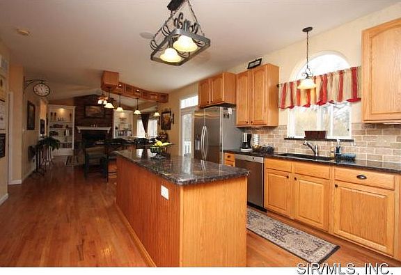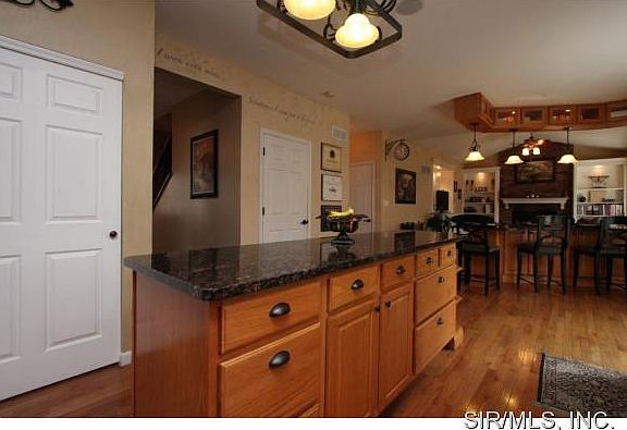Sure to impress! Lovely main level offers beautiful hardwood floors, a kitchen with center island, granite counters ,stainless appliances, a breakfast area with a stool height bar all open to the family room with gas fireplace. An separate formal dining room overlooking the wooded back yard, an office, half bath and laundry room round out the first level. The expansive upper level offers 3 bedrooms, a newly remodeled hall bath and a master suite with walk-in closet and recently remodeled bath with separate shower and tub and dual vanities. Adding to the livability is the walk-out lower level with a bedroom, bath, 5 x 6 wine room workshop and a theater/media room. Lush landscaping surrounds this home on all sides. Thoughtfully laid out walkways, a bridge and water features all connect to the covered lower deck and upper deck with retractable canvas awnings. Other features include in ground sprinklers, built-in speakers, roof in 2016, newly laid paver pathway. Municipally compliant. http://www.strano.com/real-estate/2925-14th-fairway-drive-belleville-il-62220/17035802/40551901