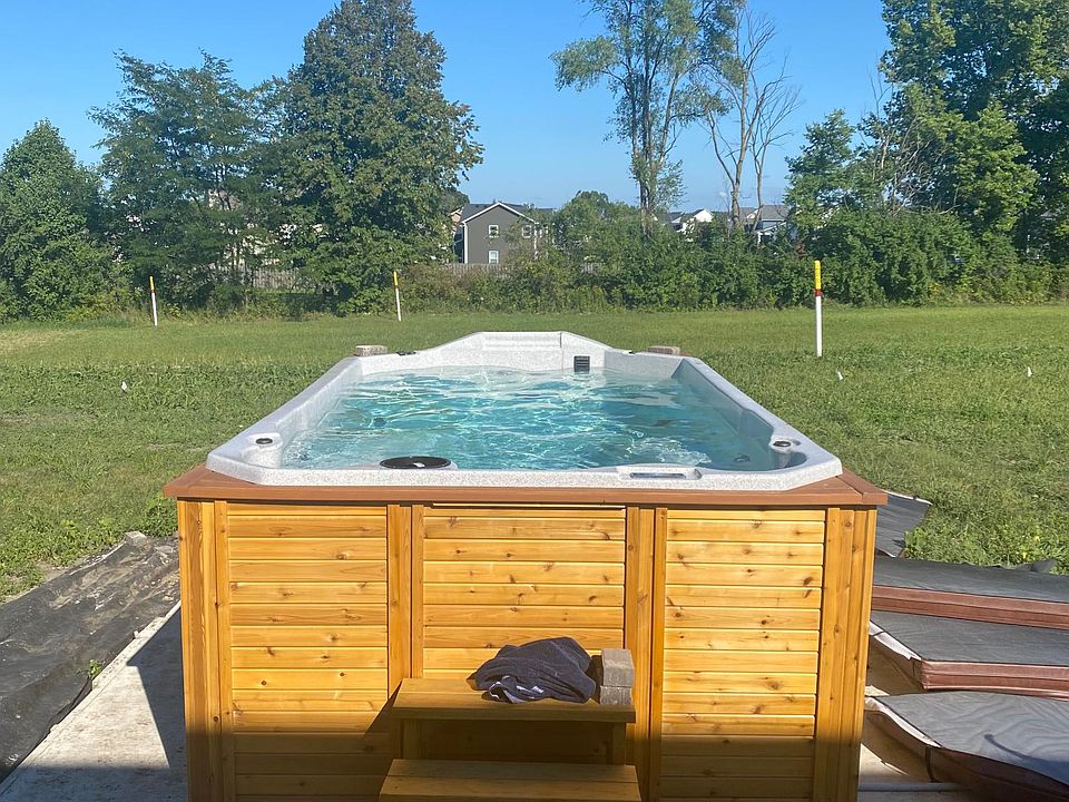 New Construction, 1 year old, 4 Bedroom, 3 car garage house with outdoor swimspa and LARGE paver patio in a 1 acre back yard. Vaulted ceiling in Great Room. Please text if interested. One year lease. One month security deposit upon signing. Available 4/1/22. We can also rent this property fully furnished as an option.