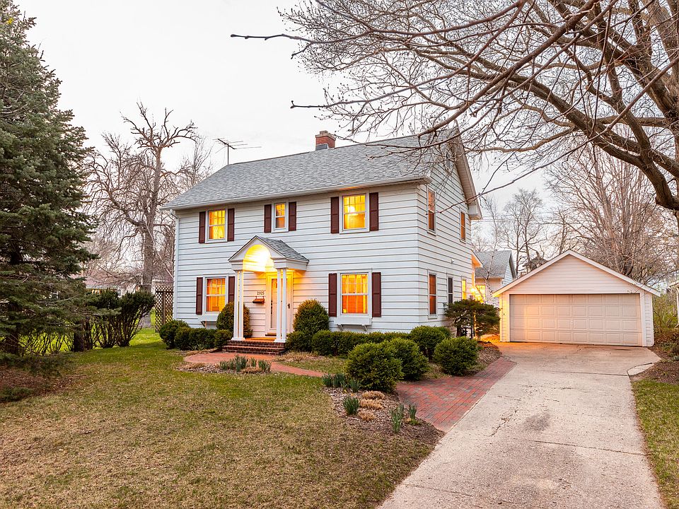 From the minute you walk into this immaculately maintained colonial 3 bedroom, 1.5 bath, 2 story home, you'll feel the love it's been shown. Gorgeous, original hardwood floors, paneled doors & hardware. The ample attic even has tongue and groove floor! Enjoy coffee in the breakfast nook or use it as a tucked away office overlooking the grand wrap-around deck and beautifully landscaped private gardens. The kitchen is updated with quartz countertops new cabinets with pull out drawers, new electric and plumbing. If you're handy or a woodworker, this home has a separate dream woodworking shop with heater, vacuum system and air purification system AND room for the van with easy alley access. New roof in 2022. Updated full bath upstairs. An easy walk to the ISU campus and arboretum, local businesses and restaurants. This is a home you'll need to see to appreciate.