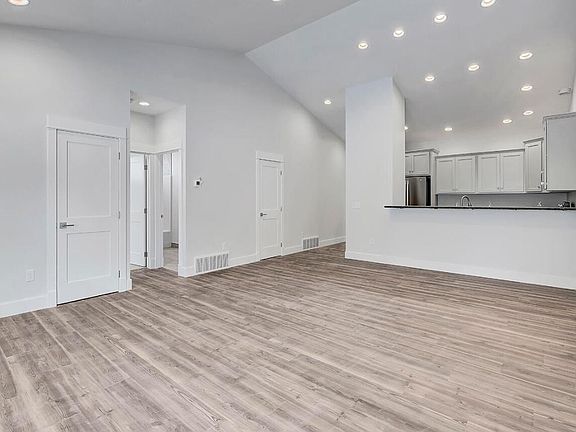 This upscale 1464 SF condo features a vaulted great room and primary bedroom, silver pearl leathered granite, stainless steel appliances, soft-close cabinets, pantry,raised breakfast bar, tiled wet areas, laminate flooring and a 3rd bedroom/flex room. The owner's ensuite includes a tiled walk-in shower, double vanity, private water closet and large walk-in closet. A covered outdoor living space off the flex room and a covered front porch add extra space for relaxing and entertaining. Located across from open space, this lovely condo comes complete with AC and landscaping to be installed this summer. Low $150/month condo dues cover private street and sidewalk snow removal, exterior maintenance, exterior building insurance, and landscape maintenance.