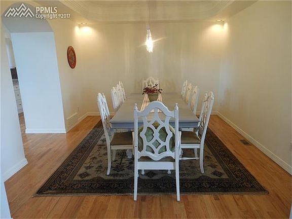 GORGEOUS SPANISH MEDITERRANEAN STYLE HOME WITH AMAZING VIEWS FROM MASTER BEDROOM. FROM THE MOMENT YOU ENTER YOU WILL FIND THIS HOME TO BE CLASSY & VERY WELL KEPT. VERY FUNCTIONAL FLOORPLAN FOR ENTERTAINING AND COMFORTABLE LIVING. SO MANY UPGRADES TO INCLUDE UNIQUE LIGHTING FIXTURES, COMMERCIAL GRADE REFRIGERATOR, LARGE GOURMET KITCHEN,KENMORE PRO APPLIANCES, NEW KITCHEN CABINETRY, WOOD & TILED FLOORS AND BRAND NEW CARPETING. OFFICE ON MAIN MAY BE USED AS A BEDROOM. EASY DENVER COMMUTE! PARK & WALKING TRAILS VERY CLOSE BY. KITCHEN AND GREAT ROOM ARE SOUTH FACING WITH LOTS OF WINDOWS AND NATURAL LIGHTING, ALL WOOD FLOORS ON THE MAIN FLOOR HAVE BEEN REFINISHED IN A NATURAL STAIN, ALL WALLS ON MAIN AND UPPER LEVEL HAVE BEEN PAINTED WITH "SIMPLY WHITE" BENJAMIN MOORE'S 2016 COLOR OF THE YEAR. THE KITCHEN HAS BEEN UPDATED WITH SHAKER CREAM CABINETS WITH SOFT CLOSE FEATURES AND UNDER CABINET LIGHTING. KENMORE PRO STAINLESS STEEL APPLIANCES WITH COMMERCIAL SIZED REFRIGERATOR AND FREEZER, DOUBLE OVEN, WINE REFRIGERATOR, 8.5 X 4.5 LARGE KITCHEN ISLAND WITH WHITE RIVER GRANITE. GREAT ROOM HAS A MOHOGANY CEILING FAN WITH REMOTE, WOOD BURNING FIREPLACE, SURROUND SOUND WIRED. UV PROTECTION FILM INSTALLED ON ALL SOUTH FACING WINDOWS ON MAIN LEVEL AND UPPER LEVEL. LARGE FORMAL DINING ROOM SEATS AT LEAST 10 VERY COMFORTABLY. DESIGNER CARPETING ON STAIRS AND UPPER LEVEL IN HERRINGBONE PATTERN IN TAUPE. MASTERBATH HAS BEEN REMODELED WITH NEW FLOORING TILE AND NEW SHOWER WITH TILE. BASEMENT HAS NEW CARPETING. LARGE FRONT PORCH WITH PAVERS AND OUTDOOR LIGHTING WITH A TIMER. EXTERIOR HAS RECENTLY BEEN PAINTED. THIS LOVELY 6 BEDROOM 4 BATH 3 CAR GARAGE SITS ON A FULLY LANDSCAPED CORNER LOT. Woodmen-Roberts Elementary School has been awarded the John Irwin School of Excellence Award for 2016.