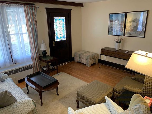 Well maintained home with 2 bedroom apt. Main floor has large dining room, eat in kitchen, 1/2 bath and living room. All wood floors in the unit except the full bath and kitchen. Second floor with two bedrooms and large bath with shower. Heat, hot water, garbage and water/water softener included in the rent. Tenant pays electric, cable, phone & internet. Walk to everything in Pine Plains.