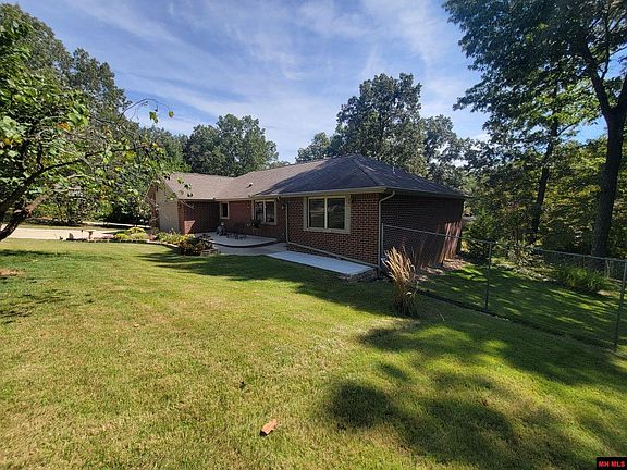 Welcome to this stunning 4-bedroom, 3 1/2-bath brick ranch-style home, perfectly situated on just over an acre in a highly desirable neighborhood. The open-concept design features vaulted ceilings and a split-bedroom plan, offering a spacious and airy feel. The expansive great room and adjoining Den with a kitchenette create a seamless flow for both daily living and entertaining. A full basement provides additional space for storage or hobbies. Step outside to enjoy the large composite deck overlooking a fenced-in backyard, ideal for outdoor gatherings or play. The property includes both an attached 2 car garage and a detached 1-car garage, providing ample space for vehicles and storage. Located just minutes from downtown Mountain Home, this home combines elegance and convenience, making it a perfect retreat.
