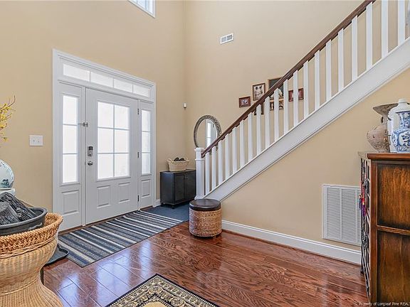 Wow! A pristine executive home in Jack Britt district offers 5 bedrooms and 3 bathrooms, with both the master and an in-law suite on the ground floor. A great room with vaulted ceiling, & formal dining room with coffered ceiling. Kitchen with granite counters, breakfast bar, & stainless steel appliances, including a gas range. Hardwood floors in the main living area, stairs, & catwalk. Crown molding, laundry room, and tons of storage. The family room is wired for surround sound. Finally, a screened porch overlooking the fully fenced backyard, Irrigation in front & back. And no HOA!