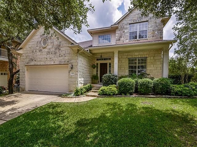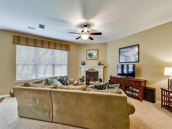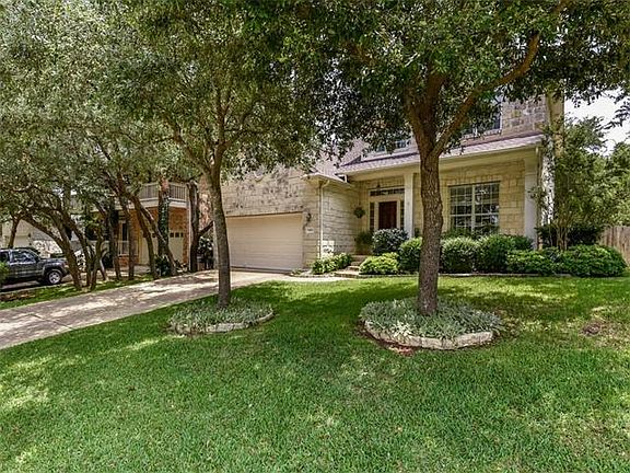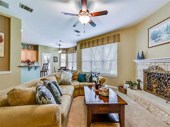 Be ready to be impressed with this Lovely & well maintained home: stylish updates, soothing earth tones, guest bed & bath down (currently exercise room), wrought iron stair railing, recent wood floors in dining & study, recent carpet, roof in 2012, beautiful stone exterior, towering oak trees, and Greenbelt on TWO sides! 20+ miles neighborhood trails. Current owner tears up when thinking of leaving--but job transfer requires move to another city. Seller loss can be buyer gain.