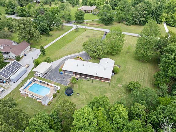 Located on 5 acres- 3 acres wooded perfect for outdoor adventures. This 4 bedrooms and 2.5 baths with a screened in sun porch, 12'3x9 laundry room with built in cabinets for extra storage, remodeled bathroom, fireplace in living room, stainless steel appliances, and large attached garage with additional 9x12 storage room. Fenced in, in ground pool with accessible outdoor bathroom and 23x30x11 detached carport perfect for a RV or boat.