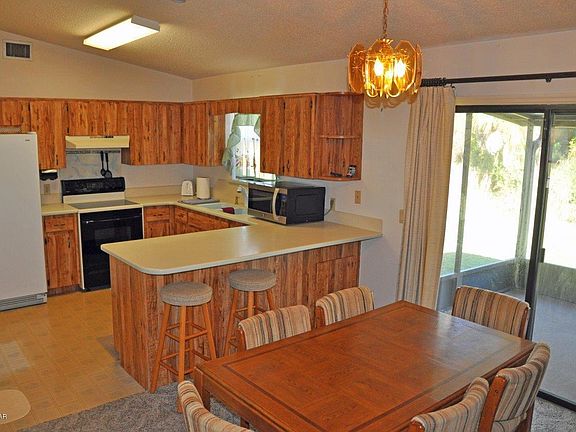 Nicely elevated lot for this move-in ready home with split bdrm plan. Large rooms including great room with vaulted ceiling, kitchen with breakfast bar, master suite with whirlpool tub & guest bdrm with built-in desk. Screened porch with small bar. In addition to the 2 car garage, there's a partially covered paved area that is ideal for small boat & trailer storage. Fish cleaning station, too. Good location with easy access to Indian River Elementary School. Furnishings remain for convenience of buyer/seller.