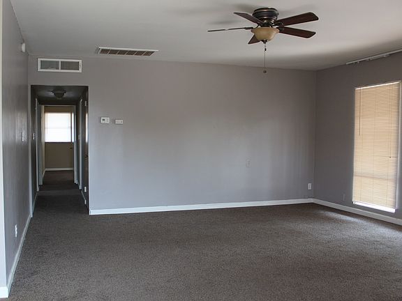 Very spacious home in a cul-da-sac! Large living room space with carpet throughout! Three spacious bedrooms with ceiling fans. One bathroom located in the hallway for easy access from all three rooms. Huge backyard with a covered patio and a detached two car garage! CA DRE 01993295
