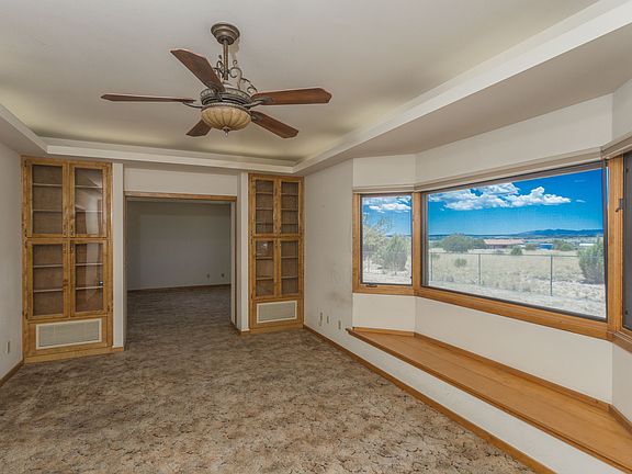 This 4 bed 4 bath home offers scenic views of Chino Valley's rolling hills, on a quiet cul-de-sac sitting on just over 2 acres. Boasting a large 3 car garage, outdoor storage shed, and covered patio. This property has plentiful space to spread out and grow into your dream property. The kitchen features a large island and ample cabinet space, great for any chef or baker. The family room holds beautiful bright bay windows that overlook views of Granite Mountain and beautiful Northern Arizona nature. This home is ready for the next owners to bring it into the 21st century!