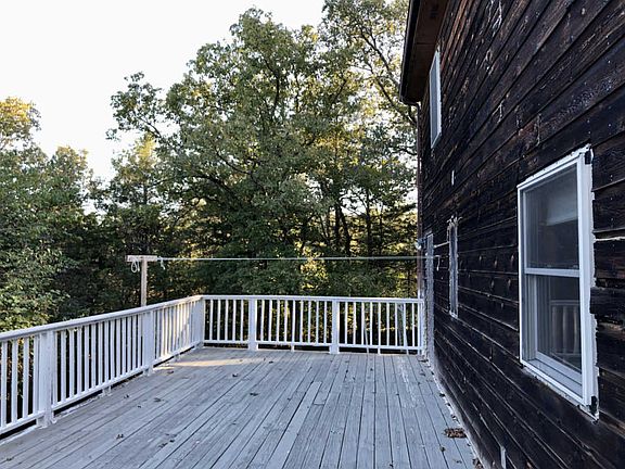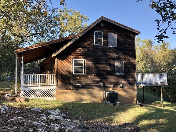 Cabin Style Home in quiet setting on 3 acres just outside of town. Convenient to Hollister Shopping & Schools and only 10-15 minutes to Branson. This home has cabin style interior, lots of pine used on the walls & ceiling, oak staircase & 2 huge bedrooms upstairs, Newer Stainless appliances in Kitchen, newer windows and a wood pellet stove in the living room. Exterior has Metal Roof, Cedar Siding, Large yard with Shade trees, covered front porch, huge back deck, 2 car garage/workshop. Backside of property runs down to a wet weather creek with waterfall you can hear when it's running. Kitchen has nice wood cabinets, reverse osmosis system, bar and stainless appliances. Roof & HVAC is approx 4 yrs old. Only thing missing is you
