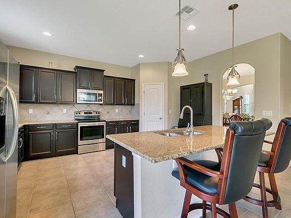 This spacious 5 bed 4 bath 3 car garage home offers everything you could imagine, and more. Located in the sought after community, Rock Springs Ridge, the oversized lot can easily accommodate a pool with more than enough room to spare. The foyer leads to the formal living room with staggered ceramic tile, arched entryways, rounder corners and high ceilings. The formal dining room opens to the living room, and leads to the lovely kitchen featuring stainless steel appliances, granite countertops, large cabinets, custom tiled backsplash and eat-in bar with pendant lighting. Adjacent breakfast nook leads to the family room, with views to the spacious backyard and lanai. Two bedrooms and a full bath complete the downstairs. The upstairs master suite includes tray ceiling, split cultured marble dual vanity, soaking tub, glass enclosed shower, separate water closet and custom California closet. The loft can easily accommodate a game room, play room or both! 8K GE Pro Elite whole home Water Treatment System!! Rock Springs Ridge is short walk to the Northwest Recreation Complex featuring endless activities for all ages - playgrounds, sports fields, walking trails, amphitheater and a long list of regularly scheduled events. Close to shopping, dining, zoned for great schools with easy access to SR-429 and everything that Central Florida has to offer. Call now to schedule your showing!