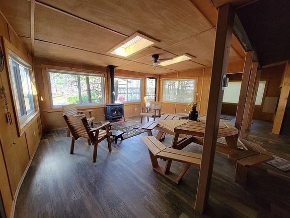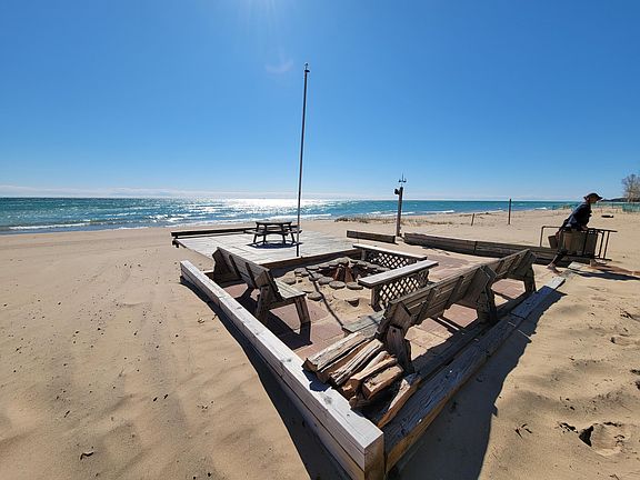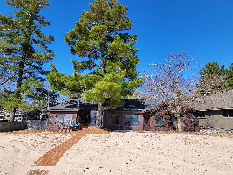 For those unfamiliar with northern Michigan, beaches like this would seem impossible. It's real and it can be yours! From the back door to the water's edge there's nothing but sugar sand and a terrific outdoor gathering area to take full advantage. The classic knotty pine cottage offers a number of spacious rooms for everyone to gather together and plenty of charming nooks to find a quiet moment. The fenced front yard adds privacy and a sense of safety for pets and little ones. A 24 x 36 garage is split in two bays providing plenty of space for vehicles on the road side and a lake facing bay for all the toys. The sale even includes the vacant land across the street for future needs.