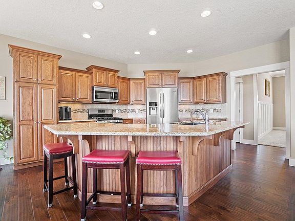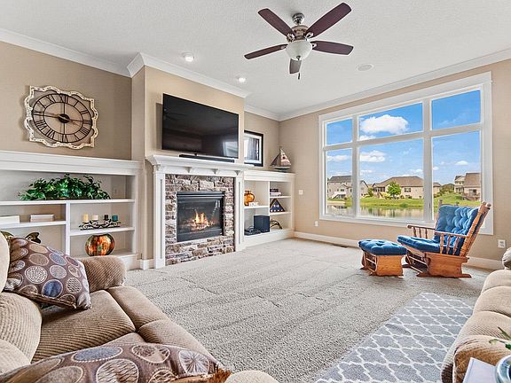 Gorgeous split bedroom ranch set on a beautiful neighborhood pond in Mediterra Subdivision with shady evening views and bright morning sun! This fantastic custom built home offers an open floor plan with many great amenities including a kitchen with granite countertops, sit up bar, beautiful hand scraped wood flooring, hickory cabinetry, tiled back splash, soaring ceilings and quality stainless appliances. The great room includes a wall of windows, gas fireplace with stone surround, built-in book shelves, plus a surround sound system. A separate formal dining room offers wainscoting and crown molding in a great space just off the kitchen. The master en suite bedroom has a back-lit trey ceiling, beautiful walk-in tiled shower, marble double vanity with center cabinet and large walk-in closet. Off the custom kitchen you'll find a fantastic screened-in sunroom for relaxing and overlooking the pond. The open daylight basement with 9 foot ceilings comes with a full bathroom, wet bar and lots of space with endless possibilities.