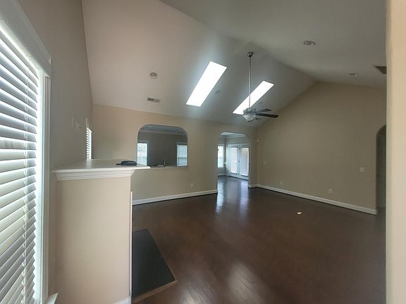 Like new, beautiful and spacious one level townhome! 3 bedroom, 2 full baths, large finished 2 car garage. Rear covered back patio with fenced in area. Hardwood flooring throughout main living areas, including kitchen and dining. Primary bedroom with large walk-in ceramic tile shower with built-in seat, dual vanity & huge walk-in closet. Kitchen features granite counter-tops, bar area, stainless steel appliances, refrigerator to remain. 2" faux wood blinds. Cathedral ceiling in great room with skylights offer an abundance of natural light! Cathedral ceiling in Primary bedroom a well. Awesome pool and amenities. Pets Negotiable, no smoking