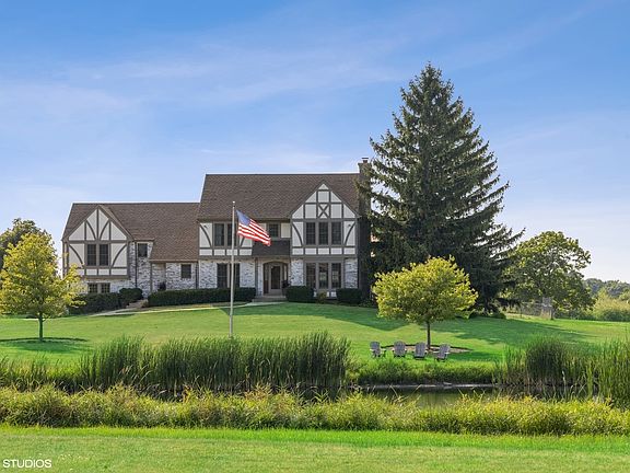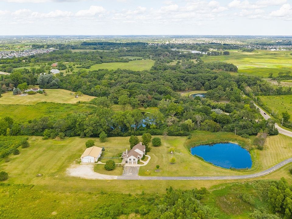 A very special property on 7 acres, surrounded by 100+ acres of forest preserve. Added bonus: a 900 sq ft in-law suite/apartment/office space featuring an en-suite5th bedroom, living room, large deck,& kitchen area. The house has 2 fireplaces, open kitchen, hardwood floors,1st floor office, a charming three season room, large floored attic with many possibilities, full basement with a workshop, multiple decks and large grassy areas, fenced areas, & garden beds. The 1/4 acre pond is stocked with fish & behind the house is a huge 60x42 Outbuilding; with heat & water, & electricity, tall dock garage doors,workshop, & loft storage-perfect for storing cars or large equipment for a business. Many updates throughout- please inquire. Only 30 mi from the city, 15 min to Lake Forest & though it feels like you're out in the country, it's only 6 mi to the nearest Metra train station. Zoned for agriculture & Horses, with trails nearby. Serene setting with incredible views. Lovely opportunity to create your dream modern farmhouse. House being sold "as is" but is in great shape.**BONUS** possible significant benefit to buyer from a land lease, please inquire