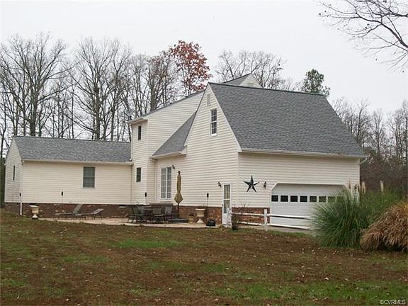 Enjoy the solitude from your awesome patio on your 4 acre mini estate. Home features open great room with gas log fireplace, dining room with laminate floor, kitchen with laminate floor with loads of cabinets, bar and breakfast area. Two master bedrooms on 1st floor, both with walk in closets and full baths (largest master has Jacuzzi tub),1/2 bath in hall. 2nd level features 2 nice size bedrooms with 2 closets in each and hall full bath. 3rd level features an office with new carpet, full bath and closet (this definitely could be a 5th bedroom). Fresh paint throughout. Full unfinished basement which offers a lot of possibilities (new insulated walls). Full front porch and 2 car attached garage, large storage building. COUNTRY LIVING AT IT'S BEST!! but just minutes from Rt. 301 and easy commute to Richmond and Fredericksburg